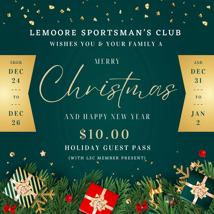 $10 Holiday Guest Passes, available several days through the end of the year.